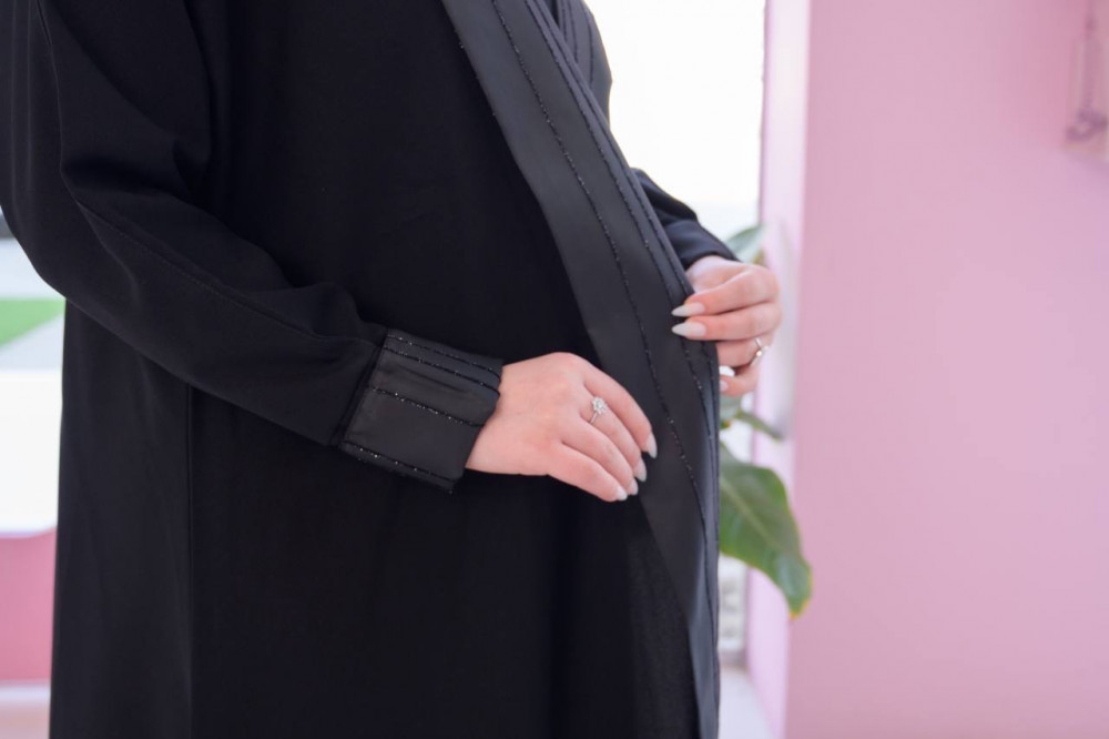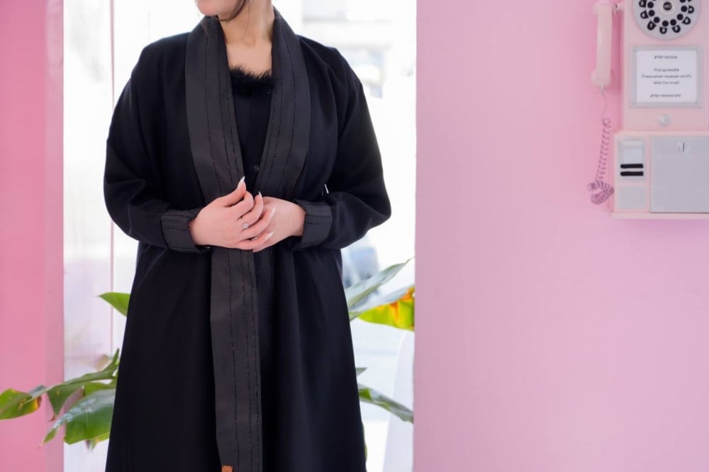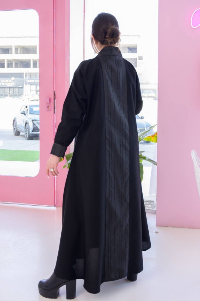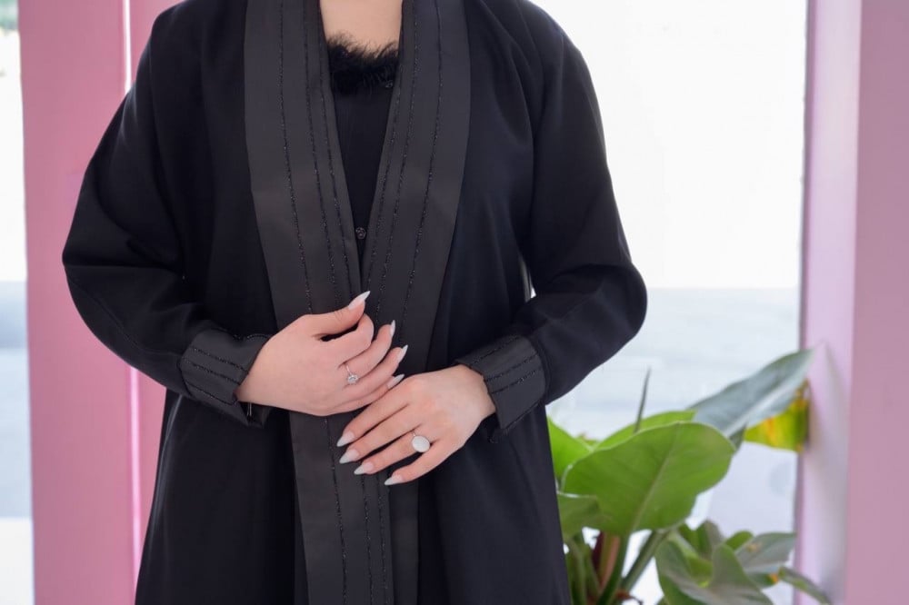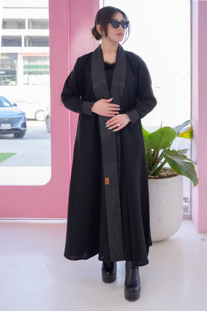 قماش كريب واقف مع تفته ، القماش يتميز بالفخامة والسواد الفاحم ، لا يحتاج إلى كوي إذا تم اخراج العباية بعد الغسيل مباشرة ونشرها