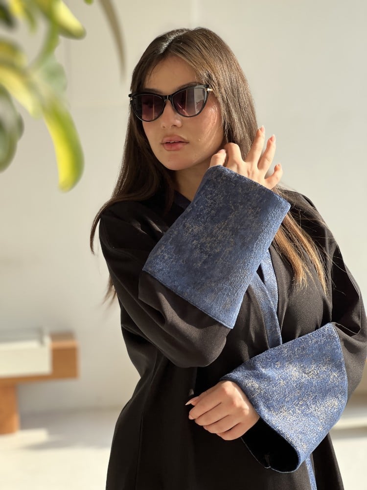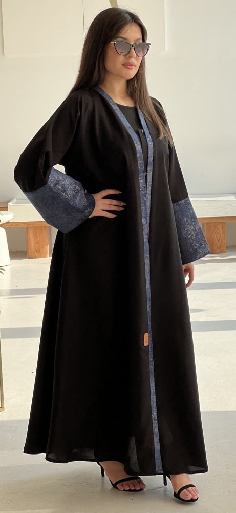 قماش كريب واقف ، مغلقة بازارير ، القصه نص كلوش ، مع قماش شتوي منقوش على الاكمام وحواف العباية كما موضح في الصور ، مع امكانية طلب العباية مفتوحة بدون ازارير
