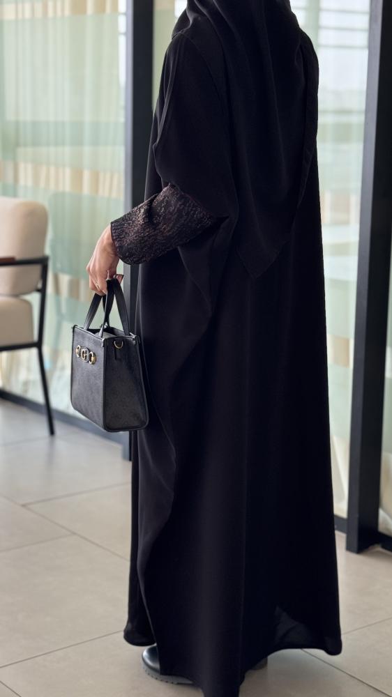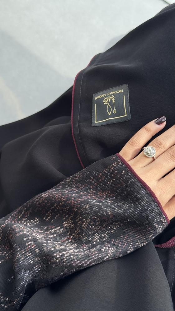 الأكمام مصنوعة من قماش فاخر يعرف بـبانتو أوبل، يتميز بنقشته الراقية التي تضيف لمسة فاخرة ومميزة للعباية.