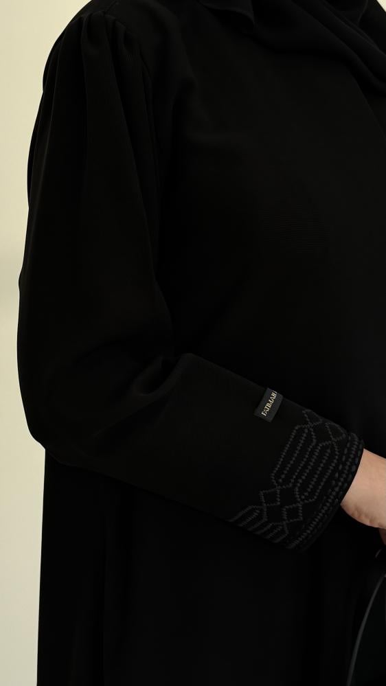 • التصميم: قصة نص كلوش تمنح العباية مظهرًا انسيابيًا وأنيقًا